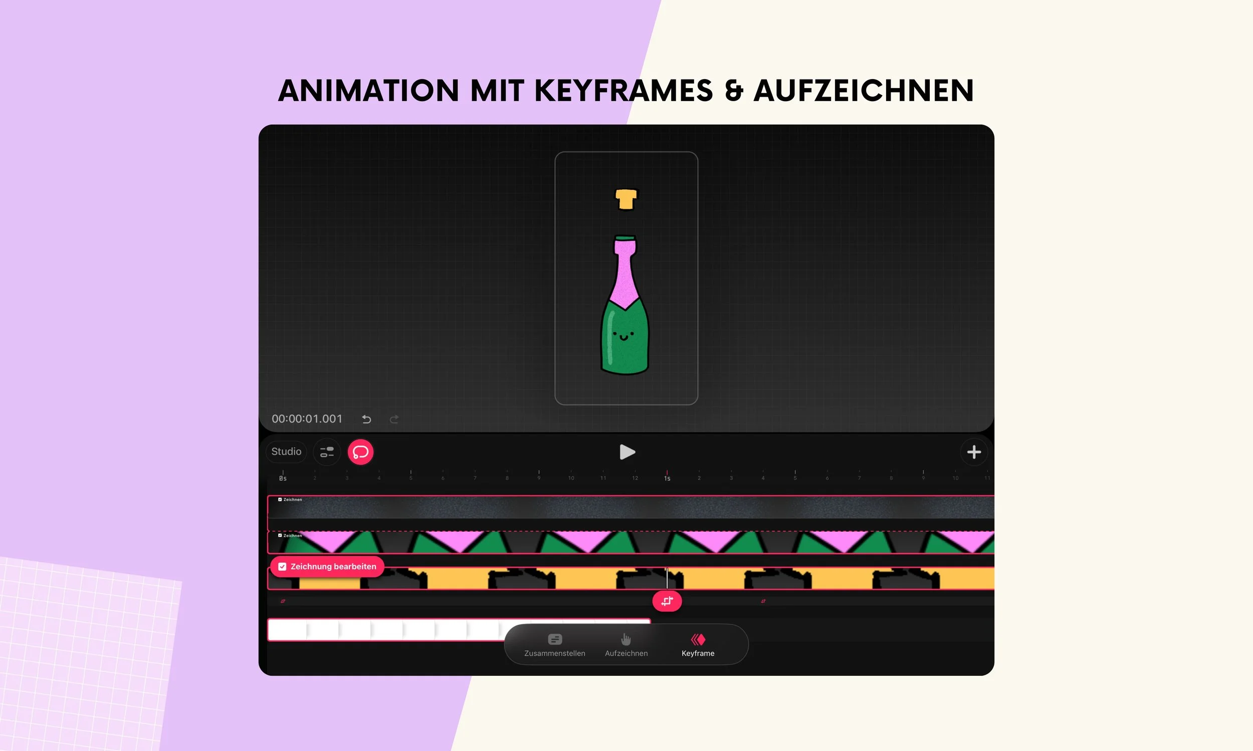 Ganz unten findest du Animations- bzw. Spurenwerkzeuge. Du findest dort Zusammenstellen, Aufzeichnen und die Keyframes.